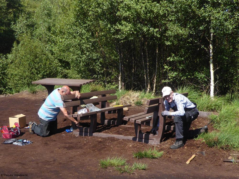 Im Verborgenen bleibt jedoch, welch Aufwand die Erstellung eines solchen Pfades bedeutet. Wer arbeitet die Infotafeln aus und gestaltet sie, wer legt die Bohlenwege an, wer baut Unterstände, wer plant das alles überhaupt?