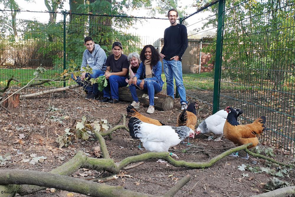 Die Idee, Hühner auf dem Gelände des Naturfreundehauses zu halten, entstand vor etwa zwei Jahren. „Wir dachten uns, dass es gerade für die Kinder aus den Schulklassen und Kita-Gruppen, die uns besuchen, ein Erlebnis ist, das Tier ‚in echt‘ zu sehen, dem sie ihr Frühstücksei verdanken“, erklärt Alexander Thron, Geschäftsführer des Naturfreundehauses. Eine weitere Überlegung sei gewesen, dass über die Hühner der Gesprächseinstieg in Themen wie die Bedeutung eines achtsamen Umgangs mit der Natur und allen Lebewesen oder dem wertschätzenden Umgang mit Lebensmitteln erleichtert werden könnte – Motive, die das Hausteam antreiben, das den Betrieb im Jahr 2018 auf 100 % Bio-Verpflegung umgestellt hat.
