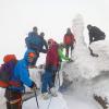 Am Skidepot wurden die Steigeisen für den weiteren Anstieg zu Fuß angezogen. Unter leichter Kletterei erreichten schließlich alle zehn Teilnehmer den Gipfel Madonna des Gran Paradiso auf 4.061 m. Erst jetzt bemerkte ich, dass keine der anderen Seilschaften den Anstieg zum Gipfel unternahm, sondern alle sich sofort auf die Abfahrt begaben. Immerhin waren die Aufstiegspuren noch zu sehen und wiesen die Abfahrtsroute.