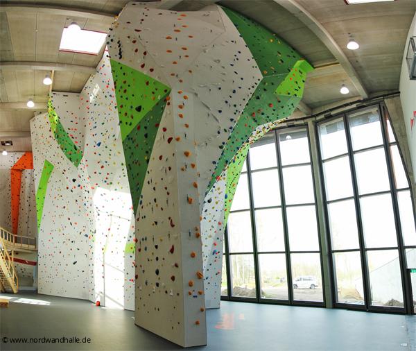 Gelegen auf dem Gelände der Internationalen Gartenbauausstellung in Wilhelmsburg, also mitten im Grünen, hat die Nordwandhalle Wände und Überhänge, die sowohl draußen als auch drinnen bekletterbar sind. Super geschraubte Routen, die sich in allen Schwierigkeitsgraden präsentieren, machen Lust auf das Klettern. Egal, ob man nur Bouldern will oder in Top-Rope- oder Vorstiegsrouten einsteigen will: Als Kletterer fühlt man sich wohl und es herrscht eine sehr angenehme Atmosphäre.