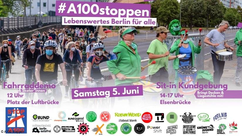 Am 17. Mai 2025 findet in Berlin-Treptow „A100 Wegbassen“ statt – ein autofreier Protest gegen den Ausbau der Berliner Stadtautobahn A100. Unter dem Motto „Leben. Vielfalt. Kultur.“ fordert ein breites Bündnis aus Zivilgesellschaft, Kulturschaffenden, Klimaaktivisten und Anwohnern den Stopp des zerstörerischen Autobahnprojekts und eine klimagerechte, lebenswerte Stadt. Am Nachmittag gibt es einen ausgelassenen, familienfreundlichen Straßenprotest, abends wird mit Techno-Musik laut getanzt – ein Protest-Rave für Berlin.