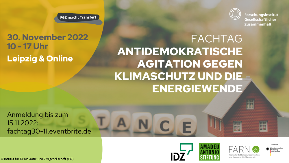 Der Fachtag wird gemeinsam vom Institut für Demokratie und Zivilgesellschaft (IDZ), der Amadeu Antonio Stiftung (AAS) und der Fachstelle Radikalisierungsprävention und Engagement im Naturschutz (FARN) durchgeführt. Neben Vorträgen bieten die Veranstaltenden Austauschforen im Workshop-Format.